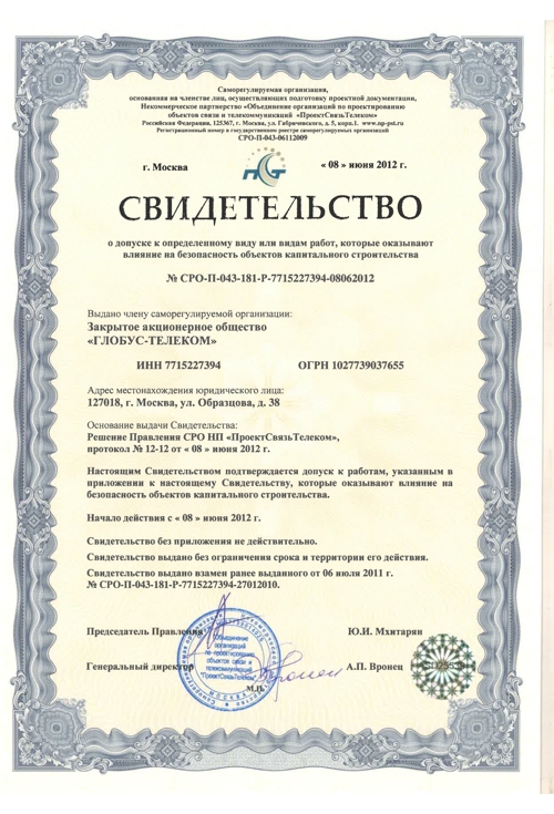 Сертификат менеджмента качества ISO9001−2011 выдан Федеральным агентством по техническому регулированию и метрологии от 14.05.2015 г., срок действия